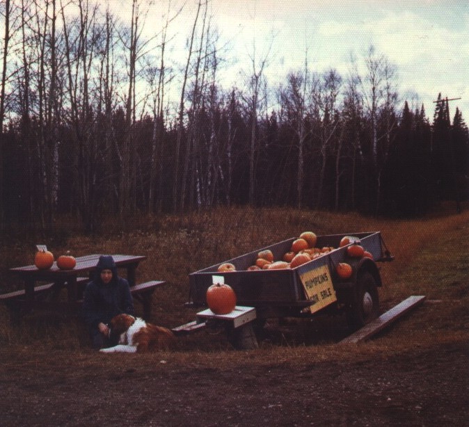 For a couple of years us kids grew pumpkins to sell for Halloween. We would clean them up and put them in the trailer by the side of the road with a sign and a cash jar.