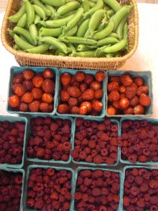 Arriving home, the berries and peas needed picking. The strawberries are just about done, but there are still a few and they are nice and sweet with the arrival of warm weather. The raspberries are nearing peak.
