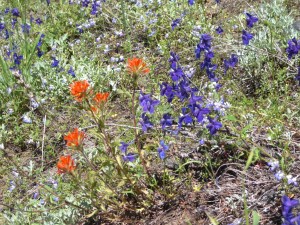 The meadows were carpeted with little pale blue flowers and deep blue larkspur, with paintbrush adding accent.