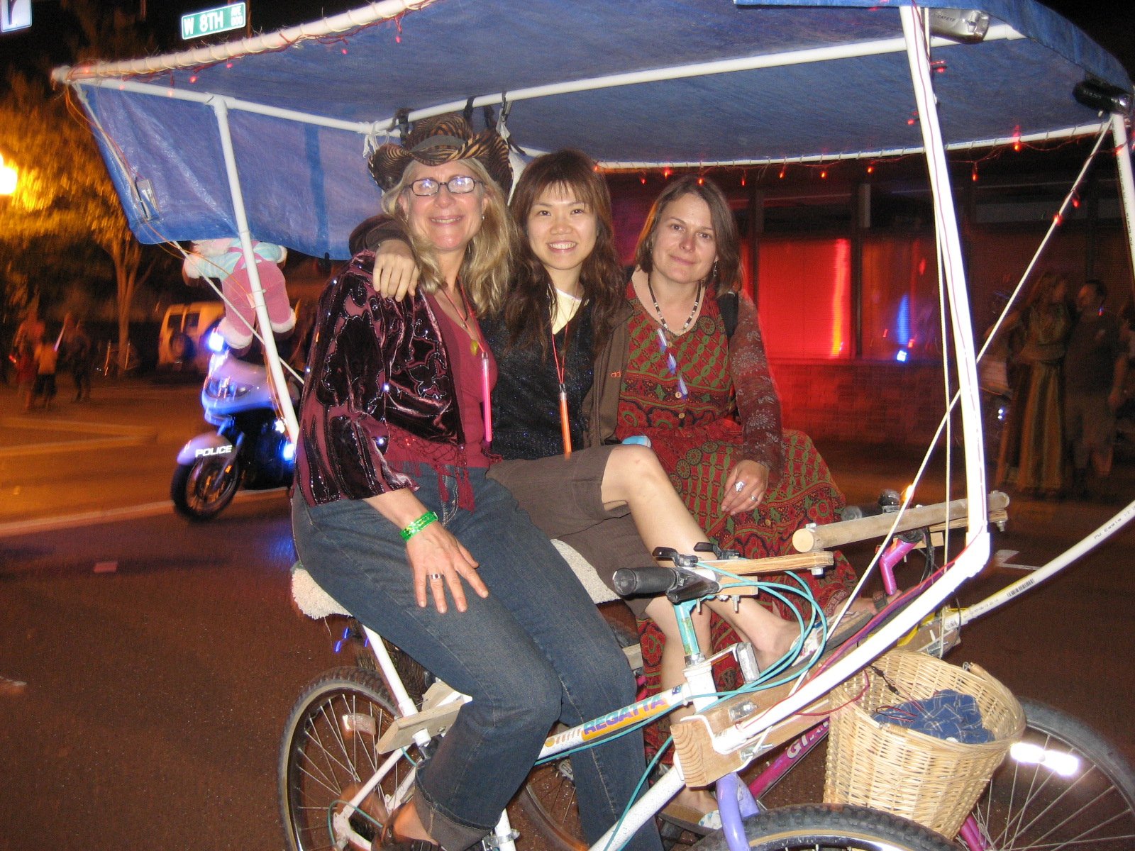 That’s about it. Hop on and have fun! The baskets, canopy and lights were a must for Burning Man. The decorations are where your creativity can run wild.