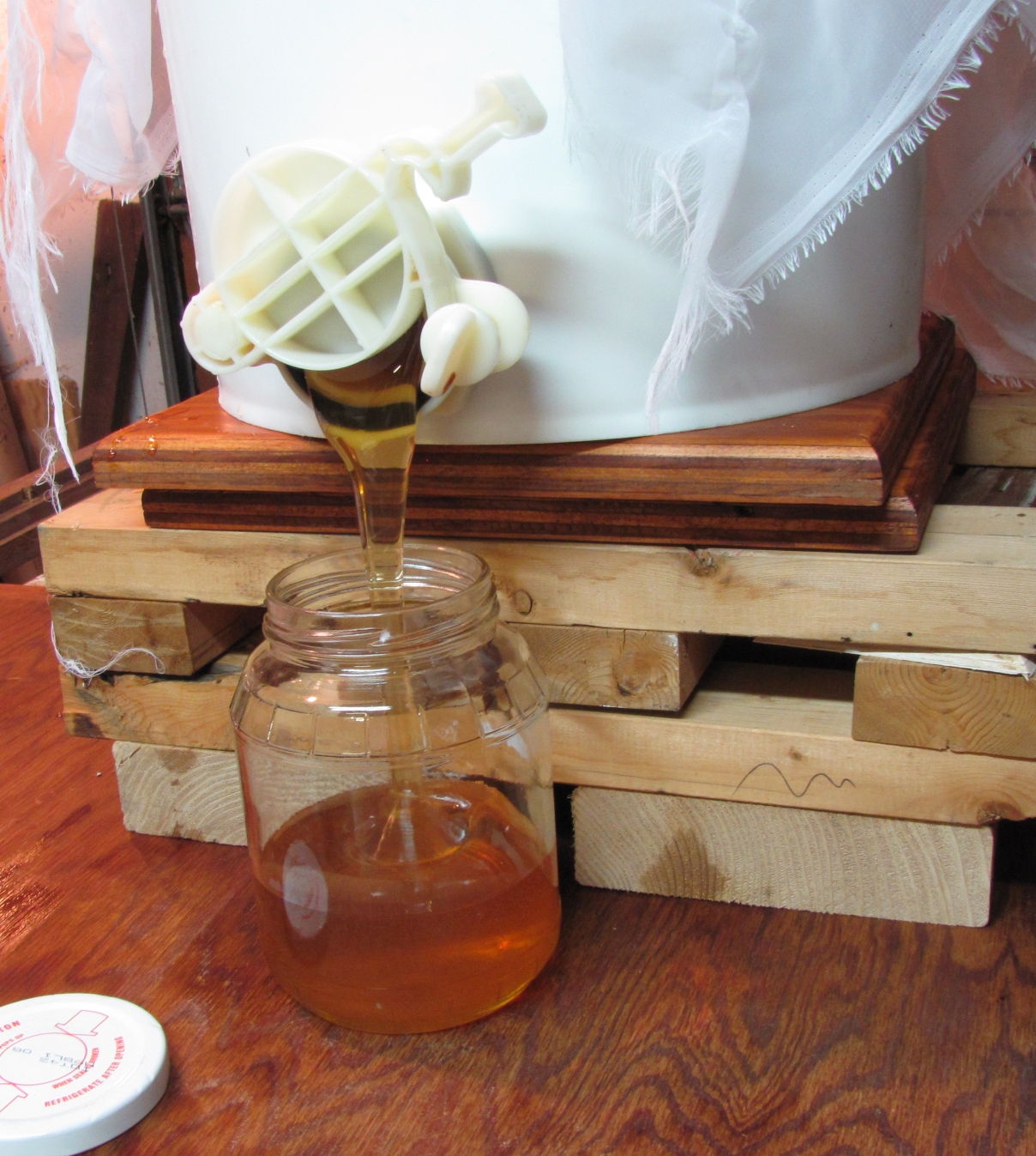 When the strainers slow down and you have a big jar to fill, there is the temptation to leave it filling while you do something else. Inevitably this leads to quarts of honey on the floor!