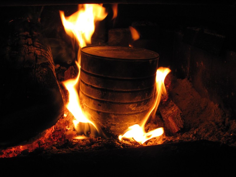 There are surely some more clever implementations of this basic system that would work better. All you need is a quasi-air-tight canister to hold the fuel to be charred that can be placed in the wood stove fire – but the can works pretty well!