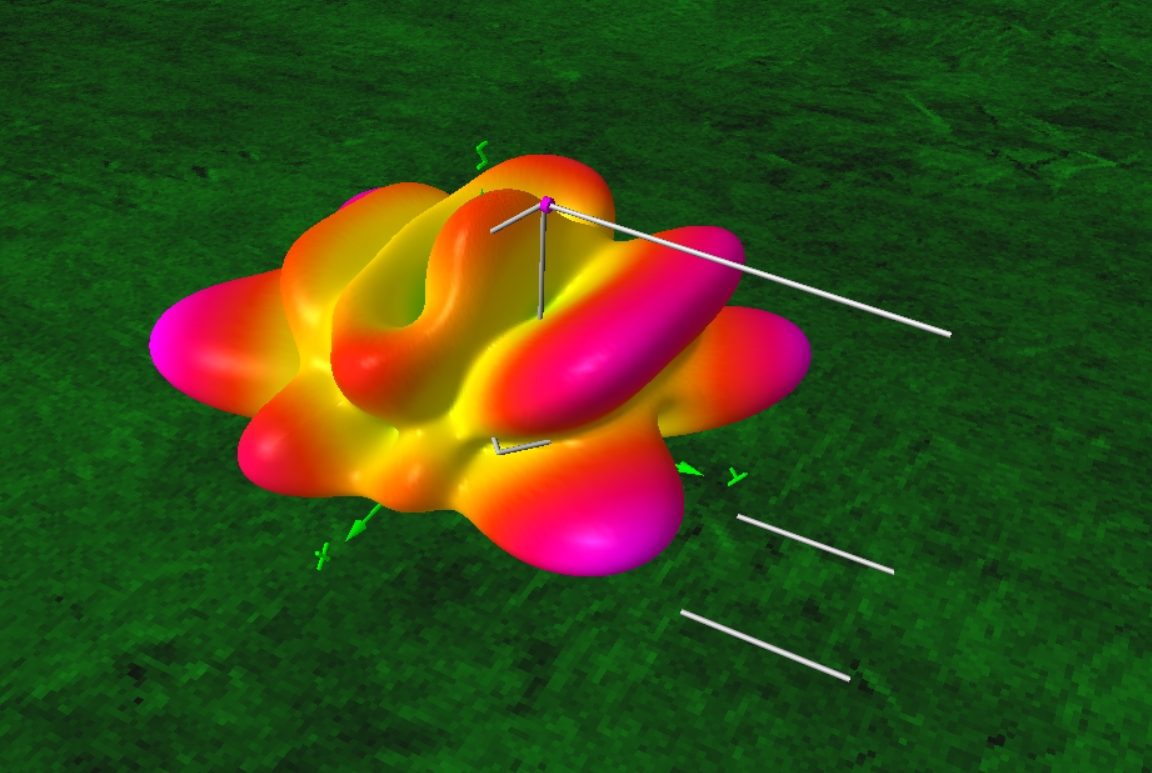 The pattern for the 40m loop antenna is less complex at 20m, since there are fewer harmonic resonances on the loop.