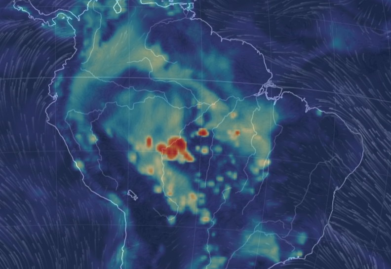 The problem is not only arctic heating, as can be seen with the fires in Brazil, here looking at particulates rather than CO. The Amazon basin is drying out producing an up-tick in fires, with similar conditions in southern equatorial Africa as well.