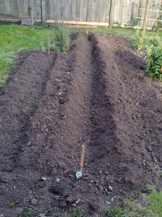 The garlic planted last October got the weeds pulled and its spring dressing of manure.