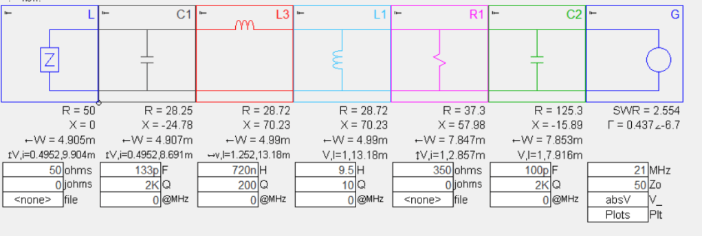 This is why at the higher bands the match to a 2500 ohm load is not necessarily what is required to achieve a matched load. I used a model based on the induced EMF model of the antenna feedpoint impedance, but it had to be modified to accommodate losses from copper/radiation at half wave frequencies.