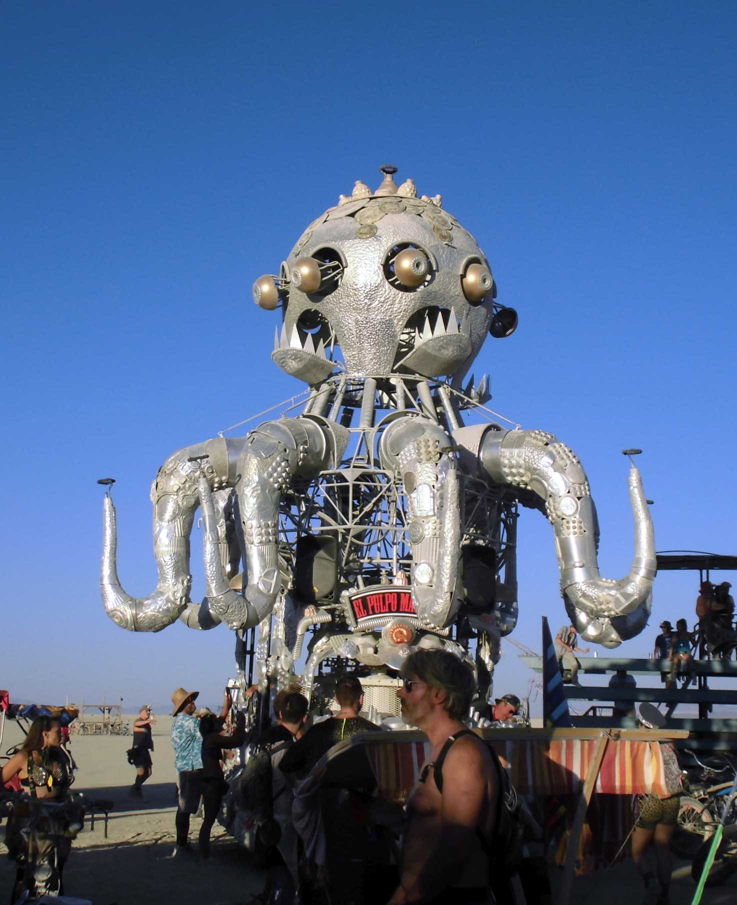 Barbie Death Camp, El Pulpo Mechinco, and a light-box art piece with depictions of previous years’ art pieces reminds us of the Burning Man’s continuity.