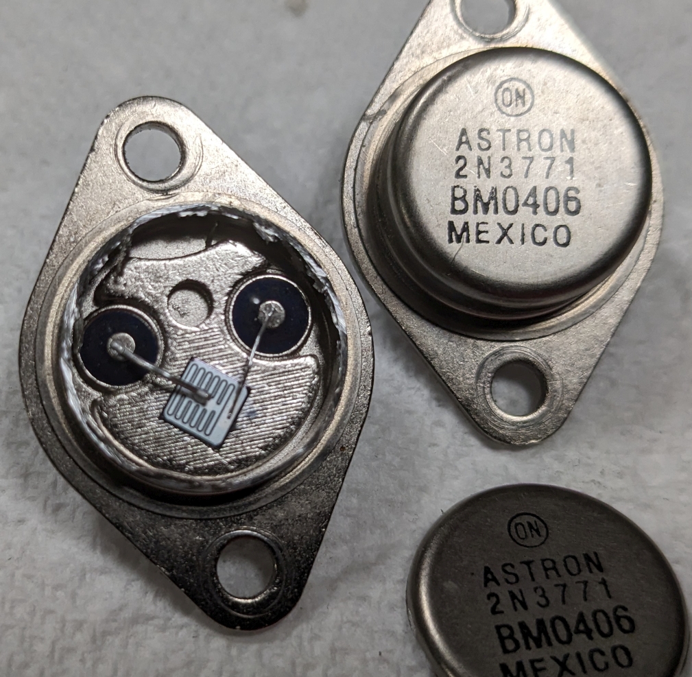 In retrospect you can see why the 2N3771 makes a good candidate to counterfeit. It is a fairly generic part, originally made by several companies and used in lots of old equipment. The big boys aren’t making it anymore, so demand is quite high on the secondary market.