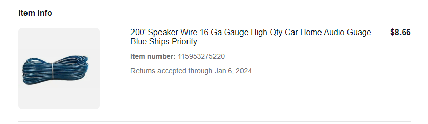 Lets take a look at my first experience. Just a bunch of speaker wire advertised as #16, but then when it arrived it was #20.