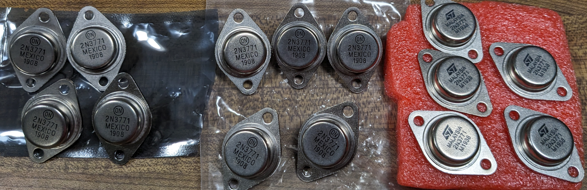 | ON Astron Original 2N3771 | old RCA 2N3771 | Ebay ST Fake 2N3771 | AliExprs XFE | AliExprs XEHUL | AliExprs HONGYU | NTE 2N3771 | |