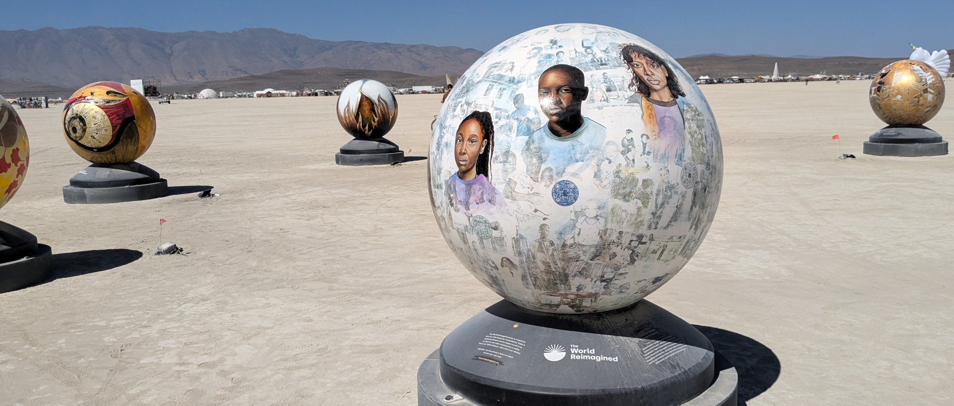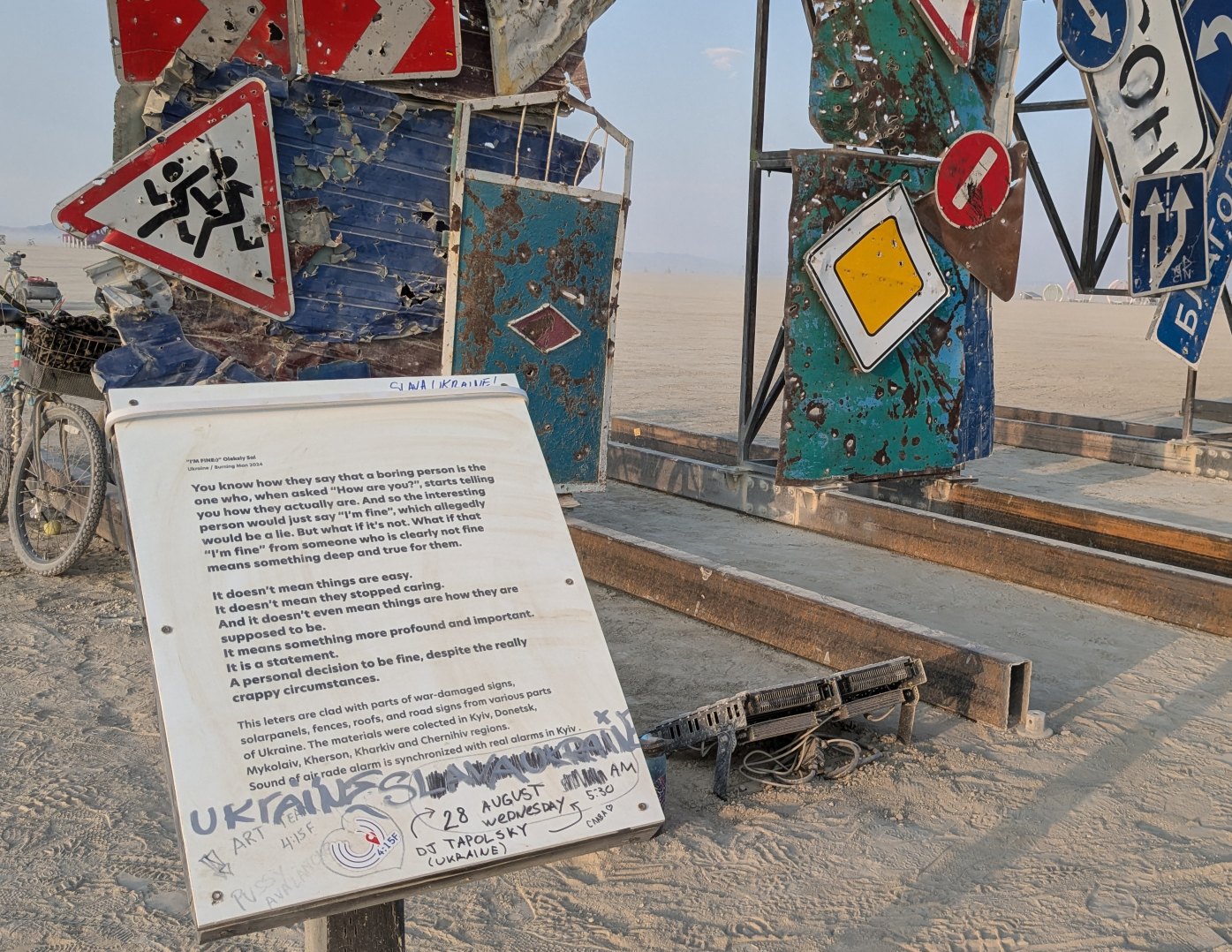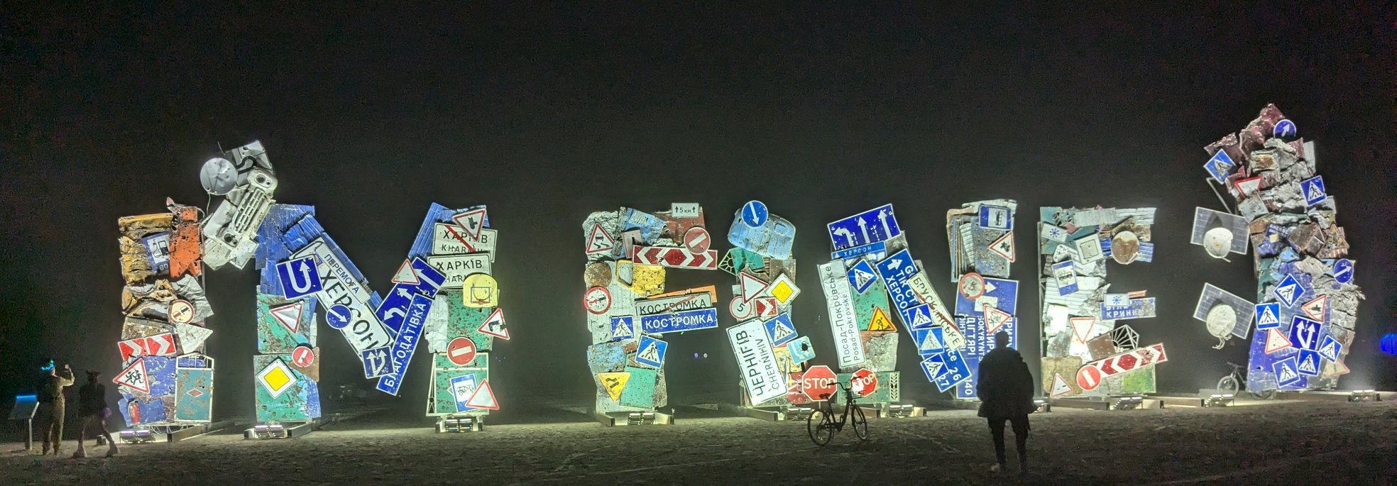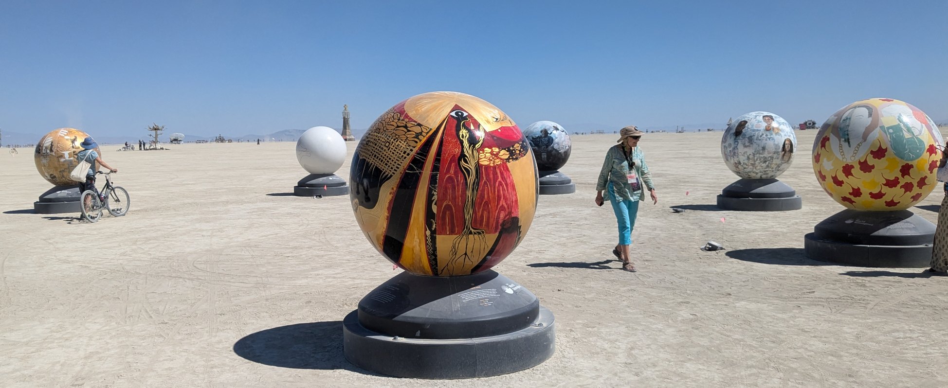 Some sleuthing revealed that the artist, Michael Benisty, is a bit controversial. Apparently his pieces are manufactured in China, shipped to the playa to be erected for “showing,” and then quickly sold profitably to art collectors. This rubs some the wrong way, since the Burning man principles abhor commercialization and commodification of anything, especially art. So it appears that his presence is tolerated but his work was not listed in any of the art guides.