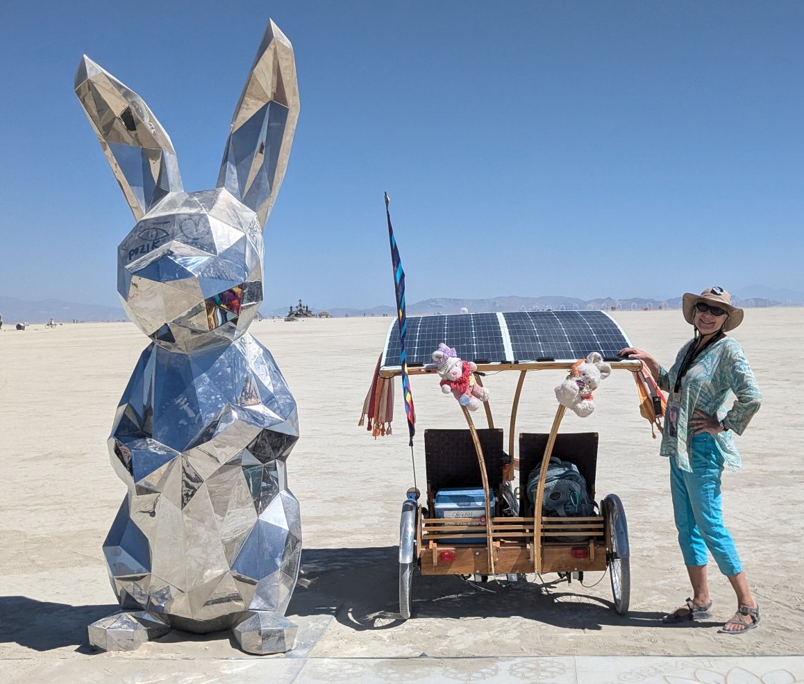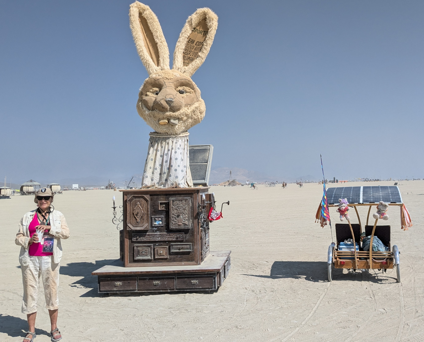 The theme of this year Burning Man was “Curiouser and Curiouser” so there were many pieces that evoked Alice in Wonderland characters. The “Dust Bunnies,” our standard DateTrike decorations, felt at home with all the rabbits.