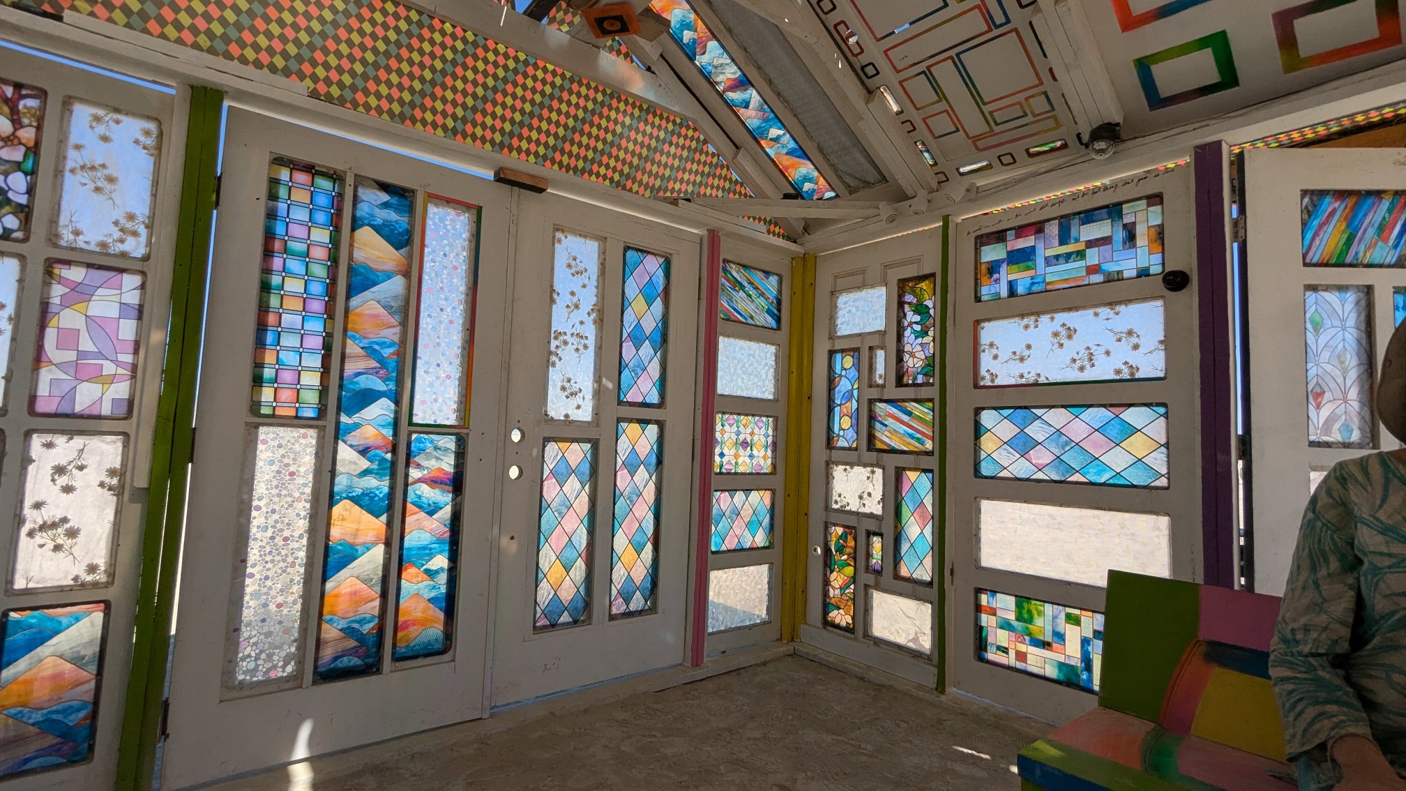 Prismatic Perspectives from the outside will appear to be a little house entirely made of doors and windows…but not just any doors. These doors have stories to tell… by Alyssa Oliveira, Alpine Artists Collective of Alpine Meadows, CA