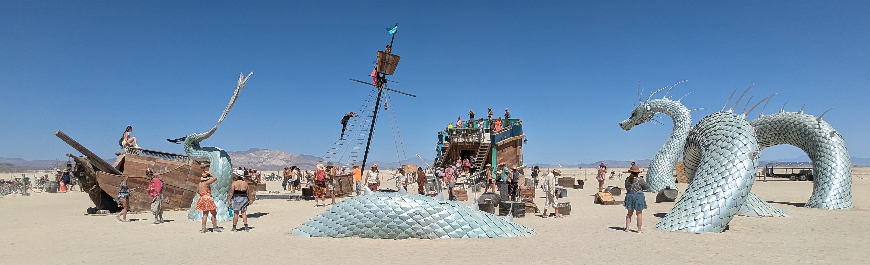Naga & The Captainess, Deep in the Black Rock Ocean, treasure and cargo are streaming out of the broken hull of a ship – the Aldrovanda… by Cjay Roughgarden, Stephanie Shipman, and Jackie Scott from Oakland and San Francisco, CA