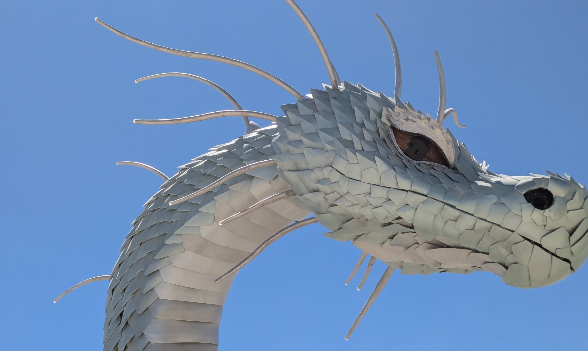 Mariposa is a 26′ wide aluminum butterfly by Christopher Schardt from Oakland, CA.
