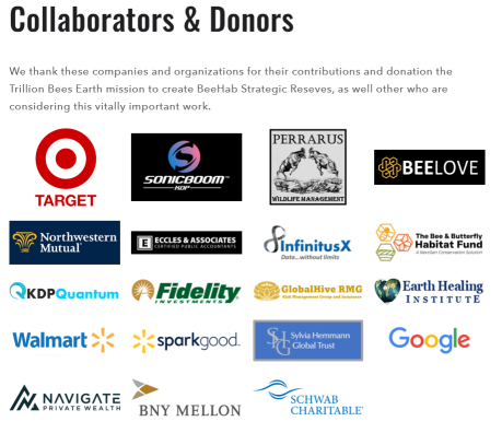 The Geocure “plan” includes buying up commercial beekeepers’ beehives for $700 each, but then paying the beekeepers a salary for still running their colonies. And they get a new pick-up truck and paid vacations! The funding comes from big multinationals you might be familiar with as well as direct donations where you can give money on their website. It is not just beekeepers being targeted with this scam. Here is a page from TrillionBees: