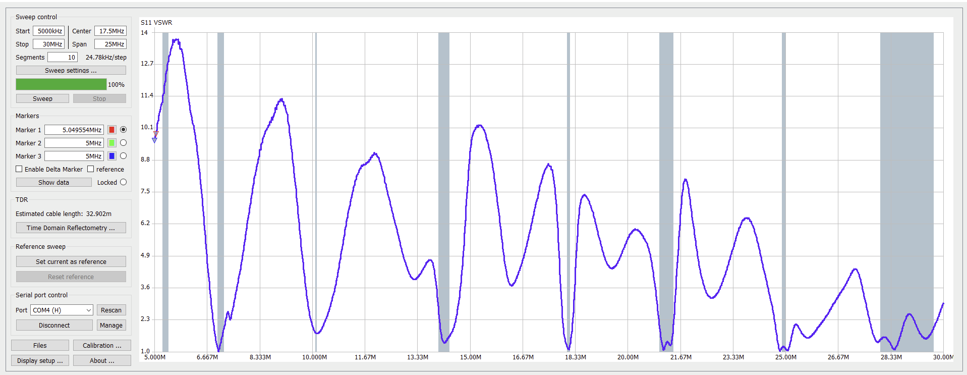 Frequency dependent graphs for these quantities are not available in the NanoVNA Saver software, so instead we will have to import the NanoVNA’s .sp2 output files into Excel or something similar to generate these charts.