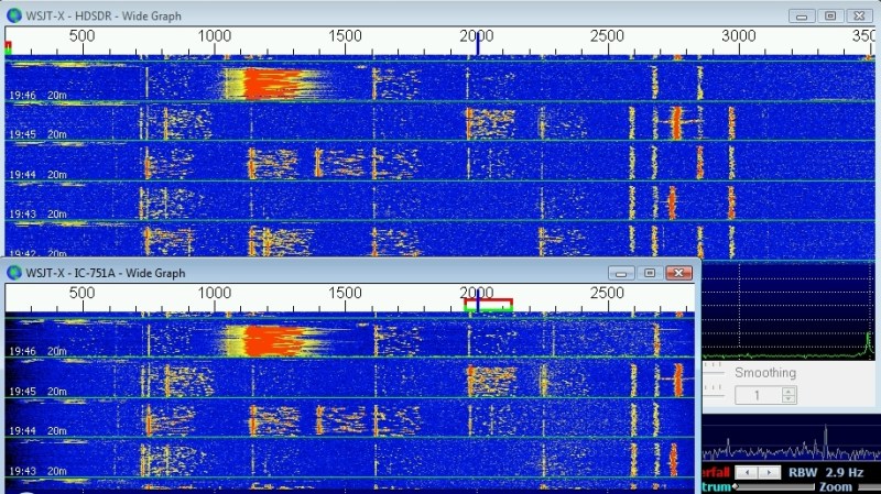 Comparing RTL-SDR and IC-751A Receivers Using JT65 & JT9 Signals 2/6/2016