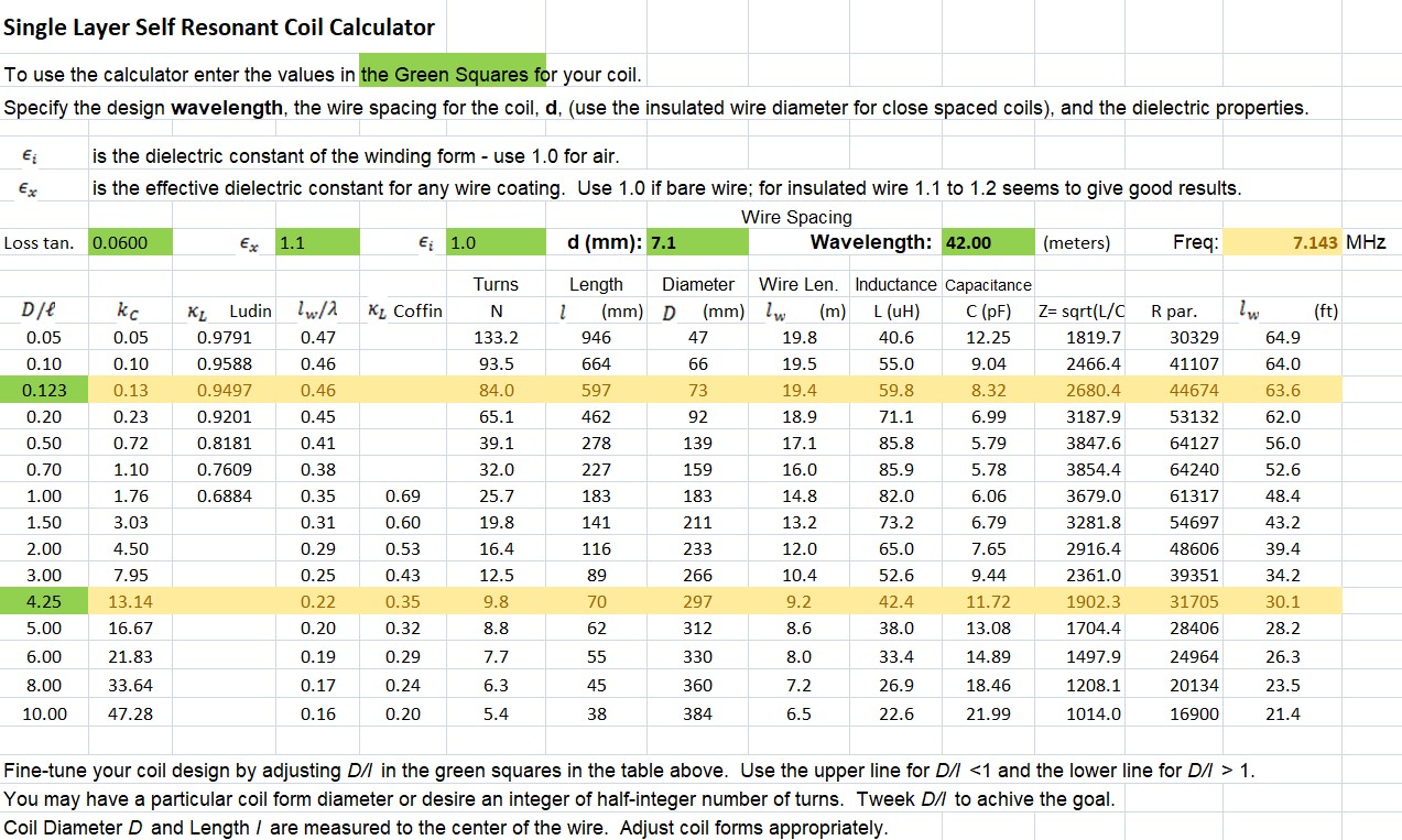 Self Resonant Coil Calculator Spread Sheet Use this calculator to aid in designing resonant traps for your antennas.