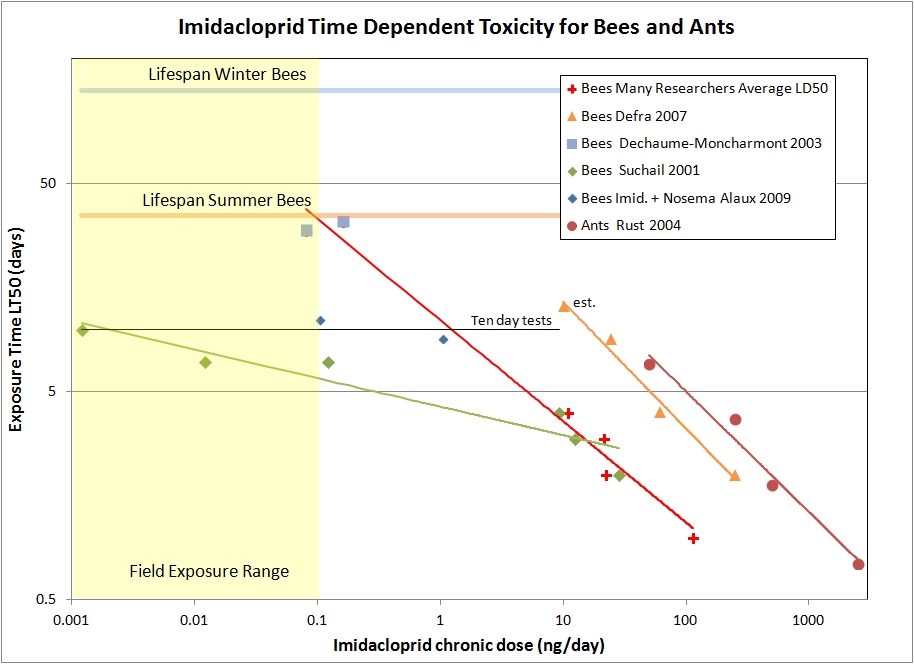Time-dependent Toxicity of Imidacloprid in Bees and Ants